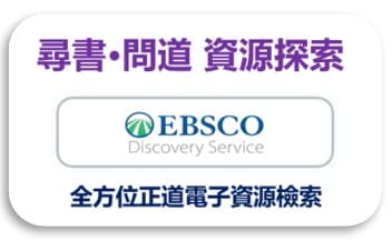 ![]() | Logos OCLC Worldcat Discovery | 提供全球OCLC會員圖資目錄查詢(15億筆書目資料),可連結檢索本院向OCLC所訂閱的16個資料庫,並在校內網域可使用本館提供的館際互借服務。 | ||